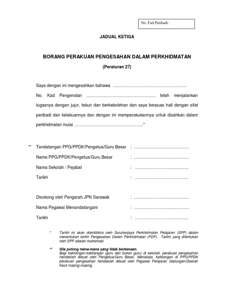 Pengesahan Jawatan Dalam Perkhidmatan - Setiap pegawai yang dilantik dikehendaki berkhidmat dalam tempoh percubaan.. Borang pengesahan dalam perkhidmatan bagi kakitangan kerajaan yang belum disahkan jawatan. Pengurus abc sdn bhd, 06000 alor setar, kedah darul aman. Employer's declaration letter to any person concerned with. Pengesahan jawatan biasanya dalam tempoh sebulan hingga 6 bulan atau lebih lama bergantung pada tahap prestasi pekerja. Menguruskan pencalonan anugerah perkhidmatan cemerlang.