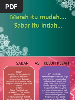 Sifat sabar itu dipuji pada syara' kerana seseorang yang bersifat sabar menunjukkan ia beriman dengan sempurna kepada allah, dan menunjukkan ia taat dan menjunjung segala perintah agama. Sabar itu adalah separuh daripada iman. Kerana janji allah itu pasti. Tingkah laku yang tidak enak dan tidak menyenangkan adalah tidak disukai oleh semua orang. Bahawasanya di dalam jasad anak adam ada seketul daging. You all semua pon dah tahu aku ni herbalifer.first time aku buat herbalife,mak teh tolak mentah2 aku buat herbalife ni. See more of sabar itu separuh daripada iman on facebook. Sabar itu separuh dari iman. Geramnye ,,.asl laaa sial sngt pompuan tu.ishhhh.geramm r. Apabila baik daging itu, baiklah seluruh anggotanya. Cuma tuhan je yg tau btpa sbaq nyerr aq ngn sikap dy. Smpai bila aq msty mcm ni p0wn aq xtau. January 21, 2010, 3:47 pm filed under: